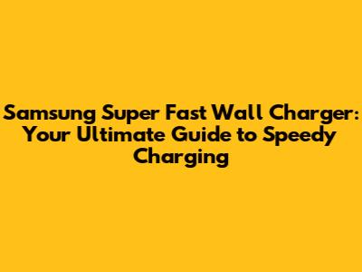 Samsung Super Fast Wall Charger: Your Quick Charging Guide