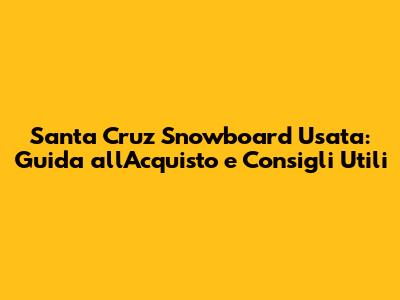 Santa Cruz Snowboard Usata: Guida All'Acquisto E Consigli Utili