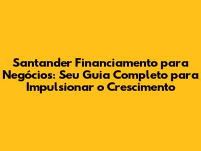 Santander Financiamento Para Negócios: Tudo Que Você Precisa Saber