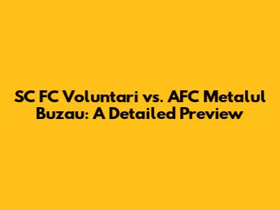 Get ready, football fans! Today, we’re diving deep into the upcoming clash between SC FC Voluntari and AFC Metalul Buzau. This isn't just another game; it's a battle of strategies, skills, and sheer willpower. Whether you're a die-hard supporter or just looking for a thrilling match to watch, this preview will equip you with everything you need to know. So, let's get started!
