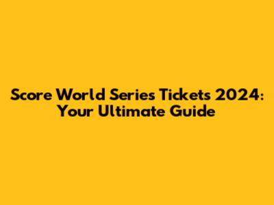 Score World Series Tickets 2024: Your Guide