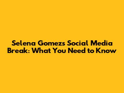 Selena Gomez's Social Media Break: What You Need To Know