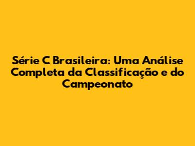 Série C Brasileira: Tudo Sobre A Classificação E O Campeonato
