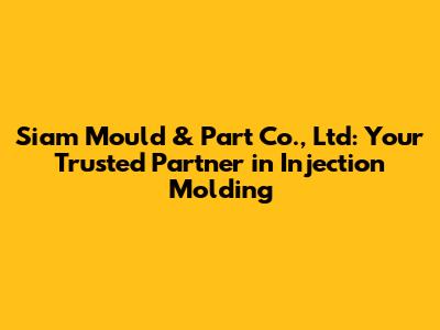 Hey there, manufacturing enthusiasts and business owners! Let's dive deep into the world of Siam Mould & Part Co., Ltd, a company that's been making waves in the injection molding industry. If you're looking for a reliable partner to bring your plastic part designs to life, you've come to the right place. We'll explore everything from their expertise and services to why they might be the perfect fit for your next project. Ready to learn more? Let's get started!