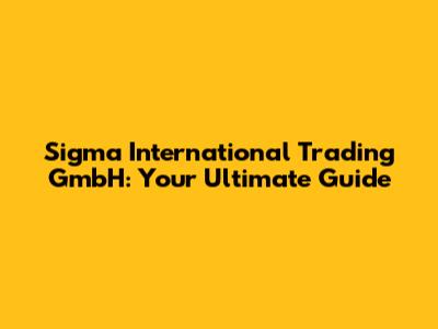 Sigma International Trading GmbH: Your Ultimate Guide
