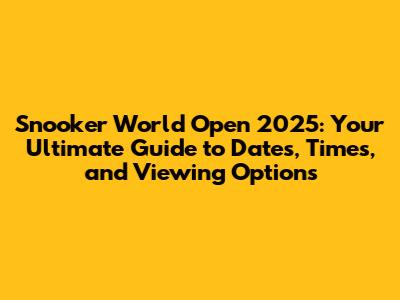 Snooker World Open 2025: Dates, Times & How To Watch