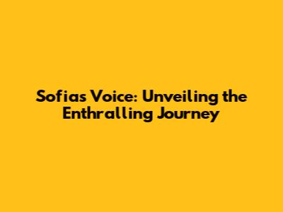 Sofia's Voice: Unveiling The Enthralling Journey