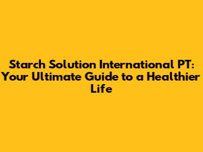 Starch Solution International PT: Your Guide To A Healthier Life