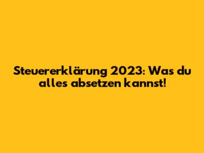 Steuererklärung 2023: Was Du Alles Absetzen Kannst!