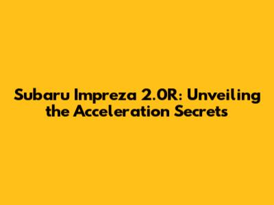 Hey car enthusiasts! Ever wondered about the Subaru Impreza 2.0R acceleration? Let's dive deep into what makes this car tick and how quickly it can get you from zero to sixty. We'll explore everything from the engine specs to real-world performance, giving you the complete picture. So, buckle up, and let's unravel the acceleration secrets of the Impreza 2.0R! This article is designed to give you a comprehensive understanding of the 2.0R's performance, helping you make informed decisions or simply satisfy your curiosity. We'll analyze factors affecting acceleration, compare it to its rivals, and look into potential modifications that could boost its speed. Understanding a car's acceleration isn't just about the numbers; it's about experiencing the thrill of the road and knowing what your vehicle is capable of. The Impreza 2.0R, known for its reliability and handling, also packs a punch in terms of acceleration. Whether you are considering buying one, or just a curious owner, this guide will provide valuable insights into what to expect from the car's performance. The information provided is based on research and real-world testing. We have compiled data from official sources, expert reviews, and user experiences to give you a balanced and accurate overview. We'll make sure to break down the complexities into easily digestible information. We will delve into how engine size, horsepower, torque, and other features affect the acceleration time. Get ready to have all your questions answered, from the engine's capabilities to the types of conditions that might affect your car's speed.