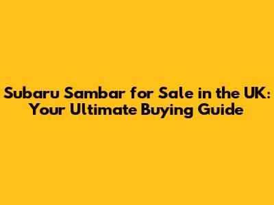 Subaru Sambar For Sale In The UK: Your Guide