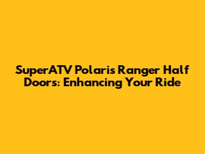 Finally, don't forget to read reviews from other Polaris Ranger owners who have purchased SuperATV half doors. Their experiences can provide valuable insights into the doors' performance, durability, and ease of installation. By taking the time to consider these factors, you can ensure that you choose the right SuperATV half doors for your Polaris Ranger, enhancing your riding experience for years to come.