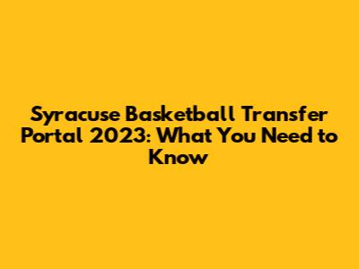 Syracuse Basketball Transfer Portal 2023: What You Need To Know