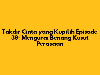 Guys, episode 38 dari Takdir Cinta yang Kupilih benar-benar bikin penasaran, kan? Kita semua pasti udah nggak sabar pengen tahu kelanjutan kisah cinta yang rumit ini. Episode kali ini penuh dengan momen-momen yang bikin kita geregetan, terharu, dan pastinya penasaran. Mari kita bedah lebih dalam, apa saja yang terjadi di episode yang bikin baper ini!