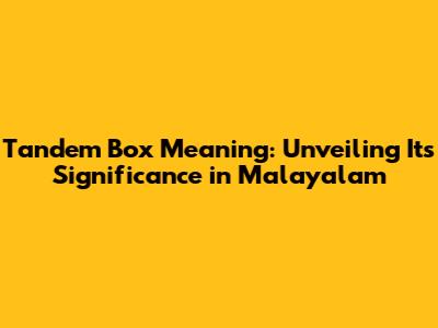 Tandem Box Meaning: Unveiling Its Significance In Malayalam