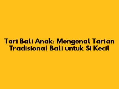 Hey guys! Pernahkah kalian melihat anak-anak kecil menari dengan begitu anggun dan penuh semangat, seolah-olah mereka adalah penari profesional? Nah, seringkali tarian yang mereka bawakan adalah tari Bali anak kecil. Tarian tradisional Bali ini memang mempesona, nggak cuma buat orang dewasa, tapi juga sangat cocok dan bahkan diajarkan kepada anak-anak sejak usia dini. Kenapa sih kok tari Bali ini begitu spesial buat anak-anak? Yuk, kita kupas tuntas bareng-bareng!