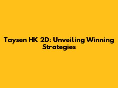 Taysen HK 2D: Your Guide To Winning Strategies