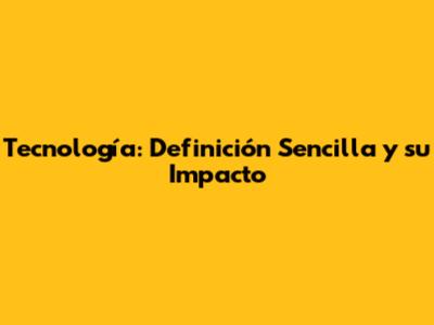 Tecnología: Definición Sencilla Y Su Impacto
