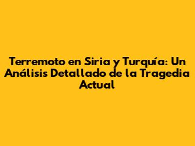 Impacto del Terremoto en Siria y Turquía: Un Análisis Profundo