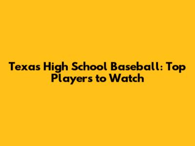 Texas High School Baseball: Top Players To Watch