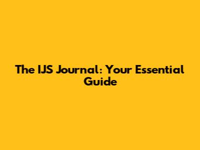 The IJS Journal: Your Essential Guide