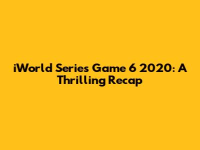 Hey guys! Let's dive into the heart-stopping action of the iWorld Series Game 6 in 2020. This game was a rollercoaster of emotions, filled with clutch plays, strategic decisions, and nail-biting moments that kept fans on the edge of their seats. Whether you're a die-hard baseball fan or just love a good underdog story, this game had something for everyone. So, grab your favorite snack, settle in, and let's relive the magic of that unforgettable night!