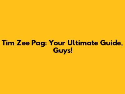 Tim Zee Pag: Your Guide To Everything