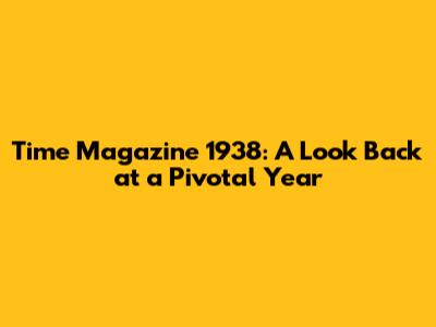 Time Magazine 1938: A Look Back At A Pivotal Year