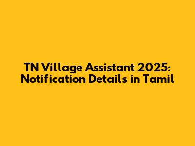 TN Village Assistant 2025: Notification Details In Tamil