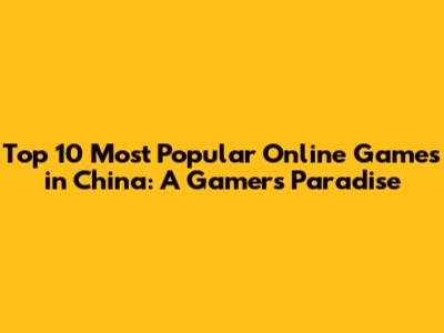 Top 10 Most Popular Online Games In China