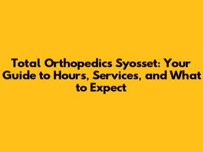 Total Orthopedics Syosset: Hours, Services & More!