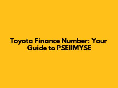 Hey guys! So, you're looking for the Toyota finance number, right? Specifically, you're probably trying to figure out how to get in touch with Toyota Financial Services (TFS) related to your PSEIIMYSE account. Well, you've come to the right place! Navigating the world of car financing can sometimes feel like a maze, but don't worry, I'm here to help you break it down. We'll cover everything from finding the right contact details to understanding your account and making payments. Let's dive in and demystify the process, so you can handle your Toyota finances with ease. This guide is all about giving you the info you need quickly and efficiently. Let's get started, shall we?