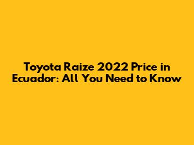 Toyota Raize 2022 Price In Ecuador: All You Need To Know