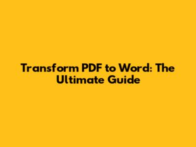 Transform PDF To Word: The Ultimate Guide