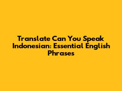 Translate 'Can You Speak Indonesian': Essential English Phrases