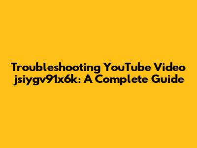 Troubleshooting YouTube Video Jsiygv91x6k: A Complete Guide