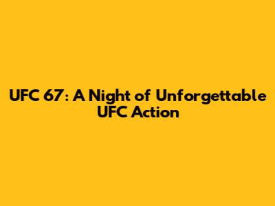 UFC 67: Relive The Epic Moments & Highlights!