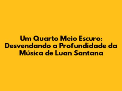A canção é um legado de Luan Santana para a música brasileira. A música demonstra a versatilidade e o amadurecimento do artista. Luan Santana se consolidou como um dos maiores nomes da música brasileira, e "Um Quarto Meio Escuro" foi um marco em sua trajetória.