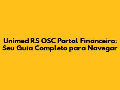 Unimed RS OSC Portal Financeiro: Guia Completo