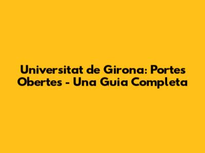 • On i Quan se Celebraran les Portes Obertes? La informació sobre la ubicació i les dates de les portes obertes es publica a la pàgina web de la UdG. Consulteu la pàgina web oficial per obtenir la informació més actualitzada.