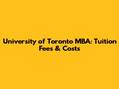 University Of Toronto MBA: Tuition Fees & Costs