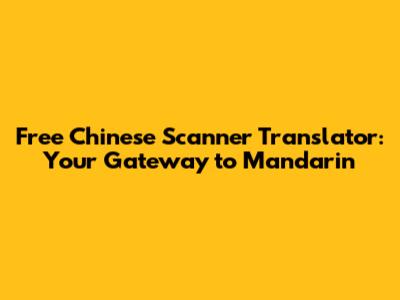 Mastering Your Free Chinese Scanner Translator: Tips and Tricks