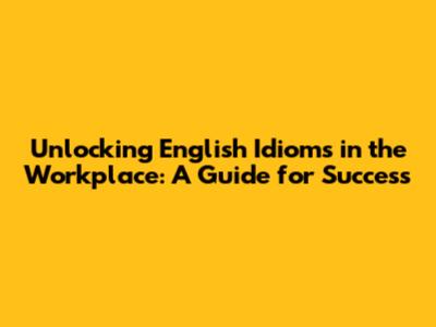 Unlocking English Idioms In The Workplace