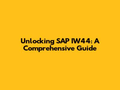 Unlocking SAP IW44: A Comprehensive Guide