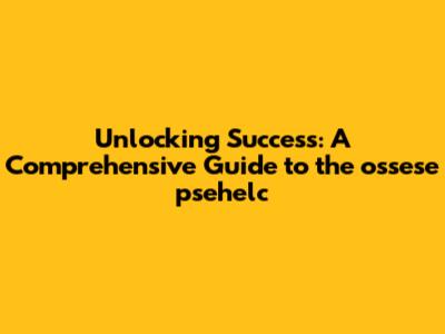 Unlocking Success: A Comprehensive Guide To The Ossese Psehelc