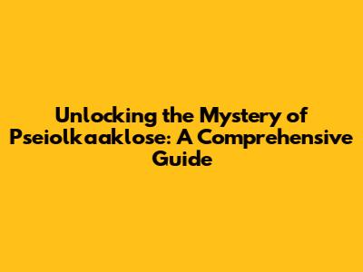 Unlocking The Mystery Of Pseiolkaaklose: A Comprehensive Guide