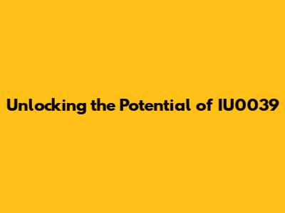 Unlocking The Potential Of IU0039