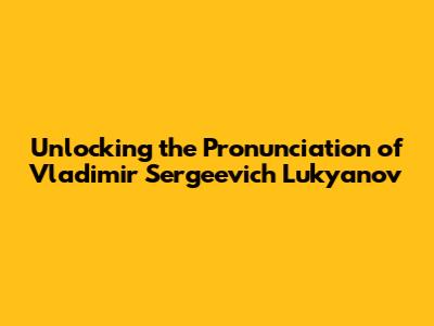 Unlocking The Pronunciation Of Vladimir Sergeevich Lukyanov