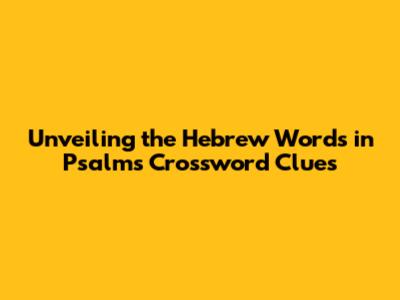 Unlocking The Secrets: Hebrew Words In Psalms Crossword Clues
