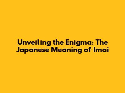 Unlocking The Secrets Of 'Imai': Meaning And Significance In Japanese